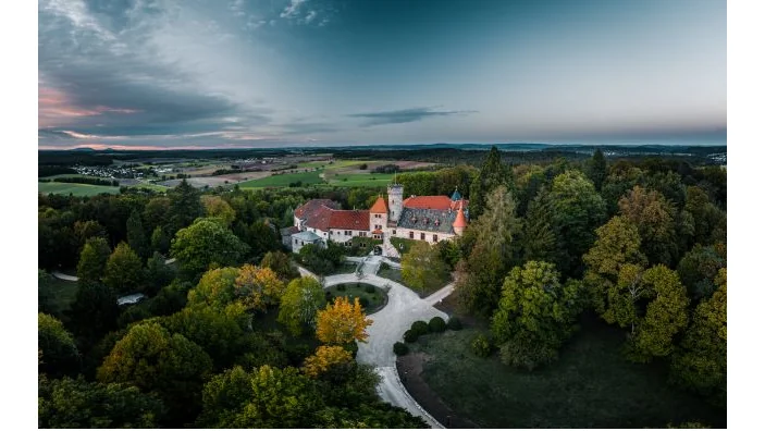 The secluded location is a plus for focused work, undisturbed celebrations, and relaxing stays. At the same time, Coburg's attractions, cultural offerings, and business appointments are quickly reached. Those planning a walk will discover views of the wide hilly landscape of Upper Franconia from the round tower and various park points. The seasonal moods – from the lush green of summer to the clear light of winter – shape the experience and the photos taken here.